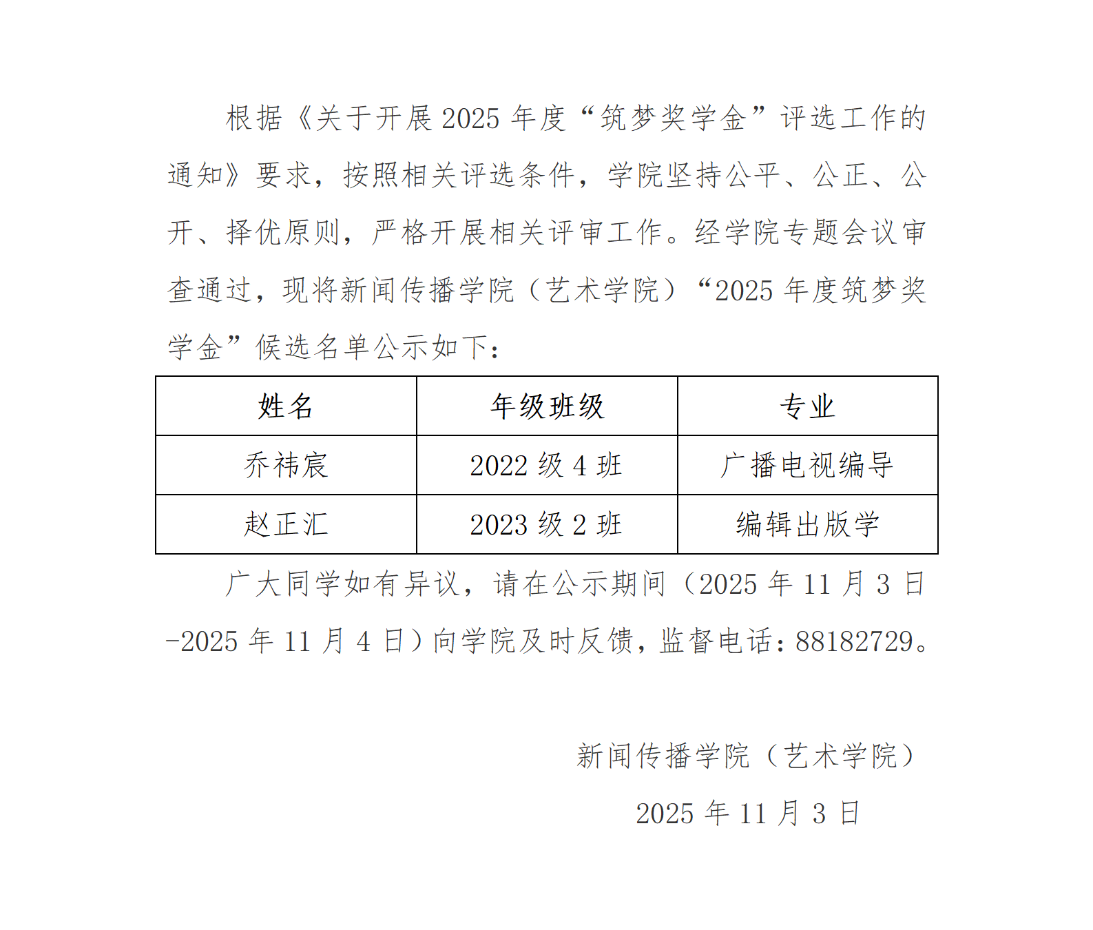 上一篇:关于新闻传播学院(艺术学院)2025-2026学年国家助学金评选结果的公示