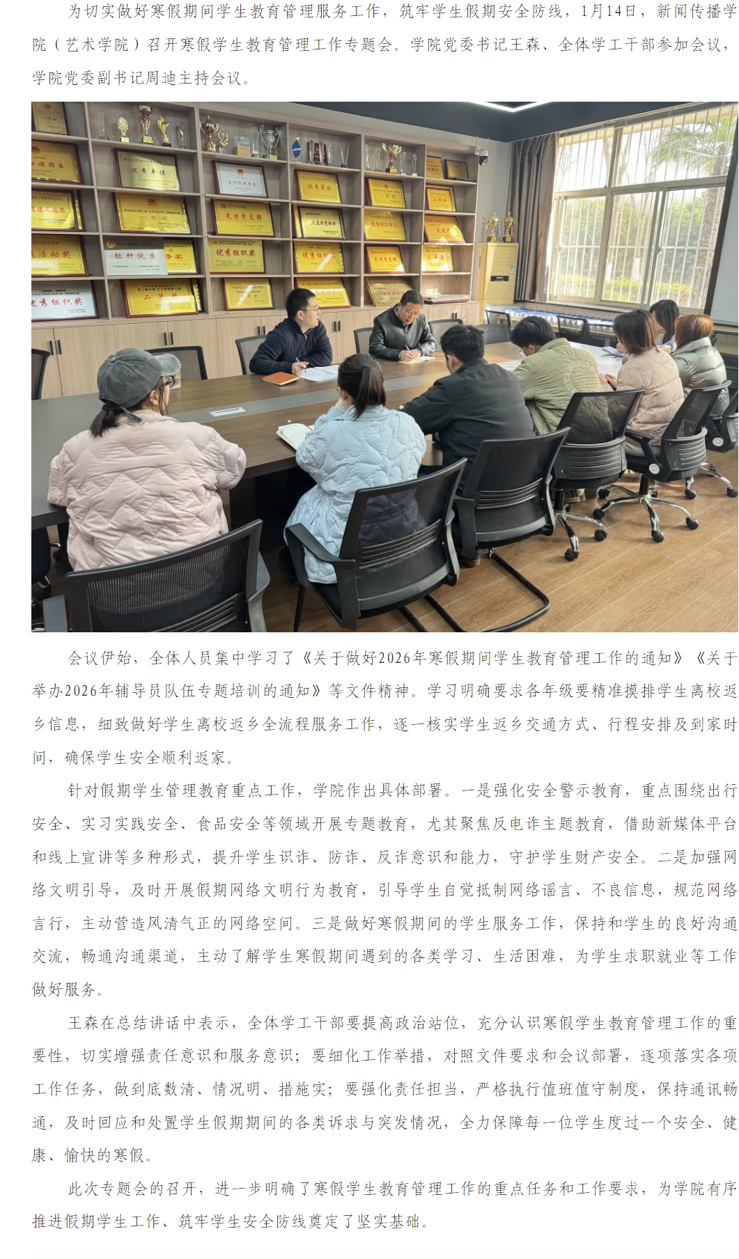新闻传播学院(艺术学院)召开寒假学生教育管理工作专题会